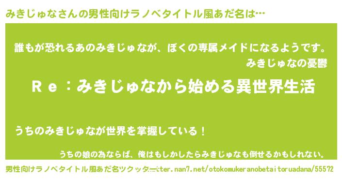 | 意味不明あだ名 | 『自称みきじゅな』『永久保存みきじゅな』 |