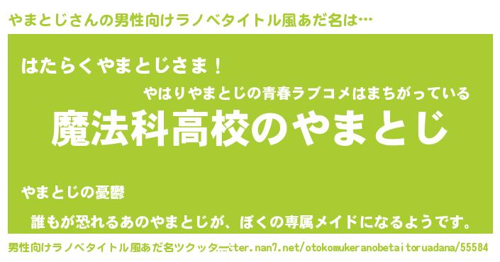 | 女子向けラノベタイトル風あだ名 | 『やまとじなんてお断りですっ。』 |