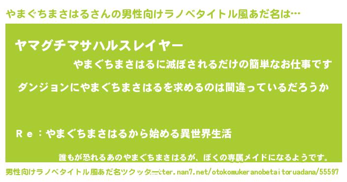 | 意味不明あだ名 | 『とにかく怪しいやまぐちまさはる』 |