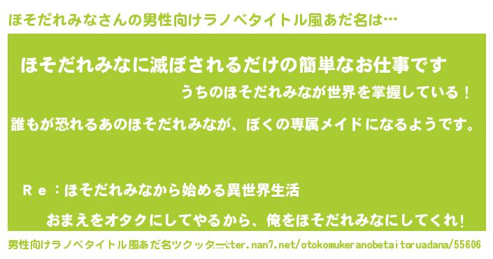 | 女子向けラノベタイトル風あだ名 | 『ほそだれみなの契約王妃』 |