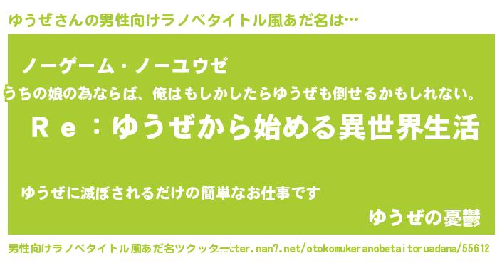 | 女子向けラノベタイトル風あだ名 | 『闇のゆうぜ』『死神ゆうぜの再婚』 |
