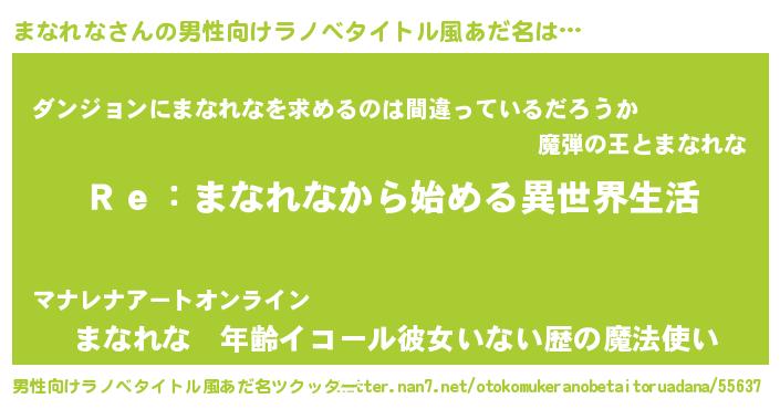 | 女子向けラノベタイトル風あだ名 | 『闇のまなれな』 |