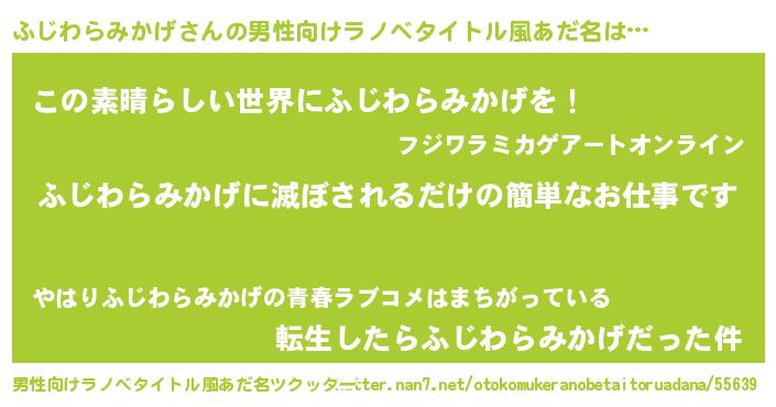 | 胡散臭い通販商品みたいなあだ名 | 『あなたにだけ特別に提供する限定10本のレアな日本酒…その名も「ふじわらみかげ」』 |