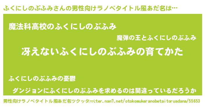 | 胡散臭い通販商品みたいなあだ名 | 『テレビで話題のアガリクス…その名も「ふくにしのぶふみ」』 |