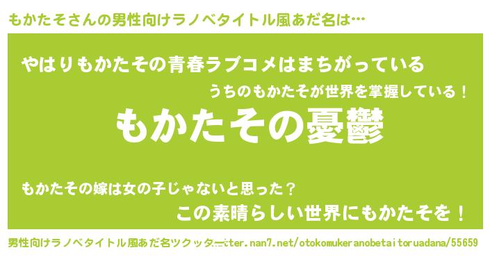 | 胡散臭い通販商品みたいなあだ名 | 『必ず成功する霊験あらたかなお札…その名も「もかたそ」』 |