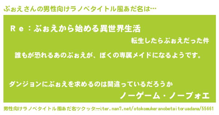 | ヘコむあだ名 | 『ぶぉえ(苦笑)』『ぶぉっちょ』 |