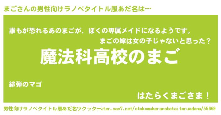 | 女子向けラノベタイトル風あだ名 | 『まごなんてお断りですっ。』 |