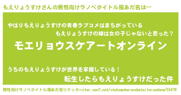 | 女子向けラノベタイトル風あだ名 | 『誰かこのもえりょうすけを説明してください! ~契約から始まるウェディング~』 |