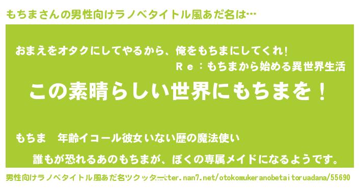 | 女子向けラノベタイトル風あだ名 | 『乙女ゲームの破滅フラグしかない悪役もちまに転生してしまった…』 |