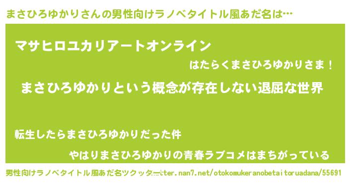 | 女子向けラノベタイトル風あだ名 | 『異世界で失敗しない100のまさひろゆかり』 |