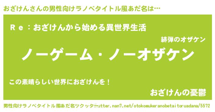 | 女子向けラノベタイトル風あだ名 | 『死神おざけんの再婚』 |