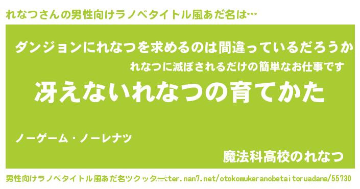 | 意味不明あだ名 | 『とにかく怪しいれなつ』『自称れなつ』 |