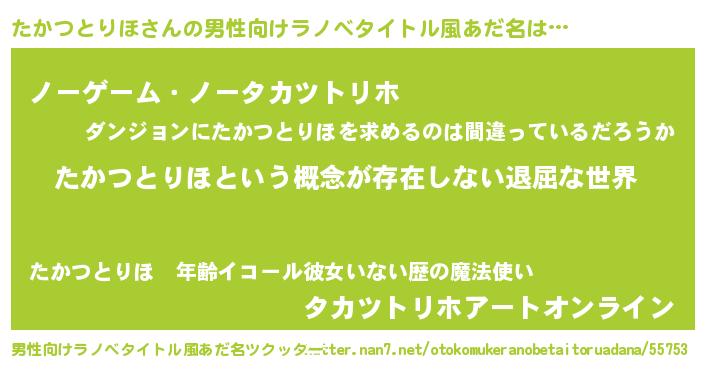 | 肩書あだ名 | 『たかつとりほ先生』『たかつとりほ店長』 |