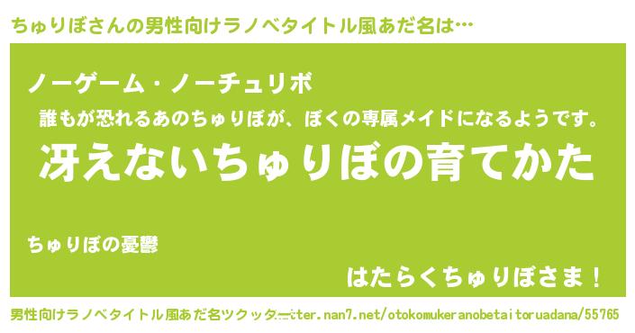 | ヘコむあだ名 | 『ちゅりぼ(笑)』『ちゅふぇ~』 |