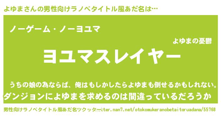 | ヒーロー風カッコイイあだ名 | 『正義の使者よゆま』『黄金騎士ヨユ』 |