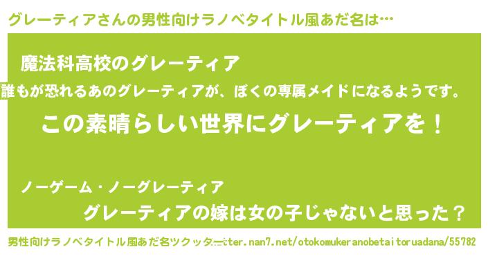 | 意味不明あだ名 | 『住所不定無職グレーティア(7歳)』 |