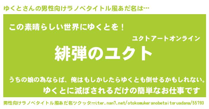 | 意味不明あだ名 | 『住所不定無職ゆくと(9歳)』『自称ゆくと』 |