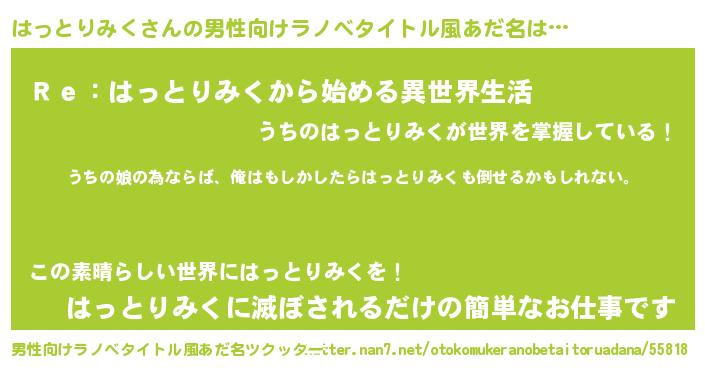 | ファンタジー風あだ名 | 『エターナルハットリミクー』 |