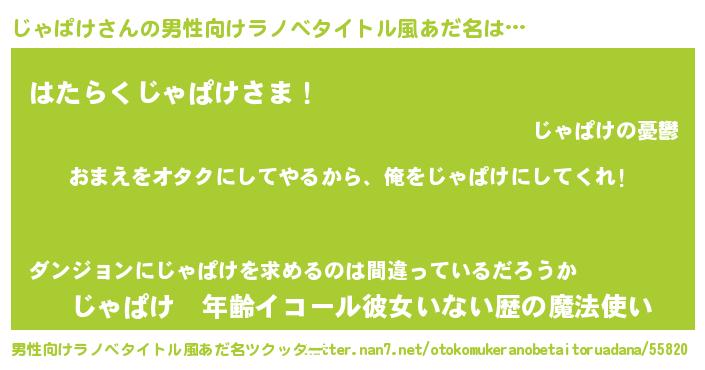 | 女子向けラノベタイトル風あだ名 | 『じゃぱけ夫妻のなれそめ』 |