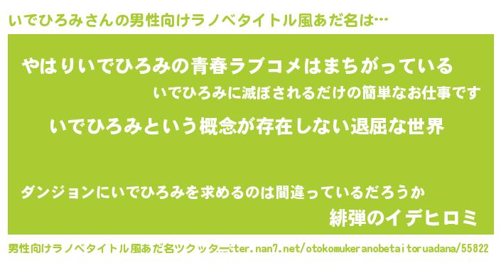 | ヘコむあだ名 | 『いでひろみ(笑)』『牛乳』『いでを』 |
