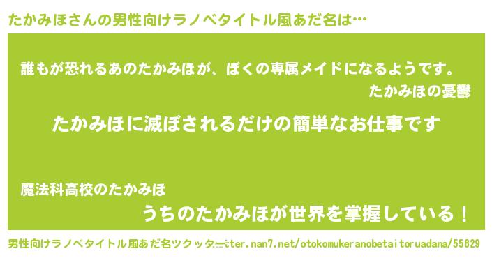 | 胡散臭い通販商品みたいなあだ名 | 『前代未聞の健康食品…その名も「たかみほ」』 |