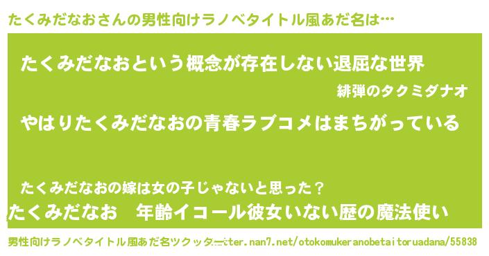 | ファンタジー風あだ名 | 『エターナルタクミダナオー』 |
