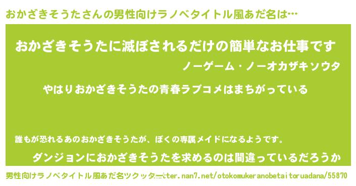 | 女子向けラノベタイトル風あだ名 | 『おかざきそうたの雑貨屋さん』 |