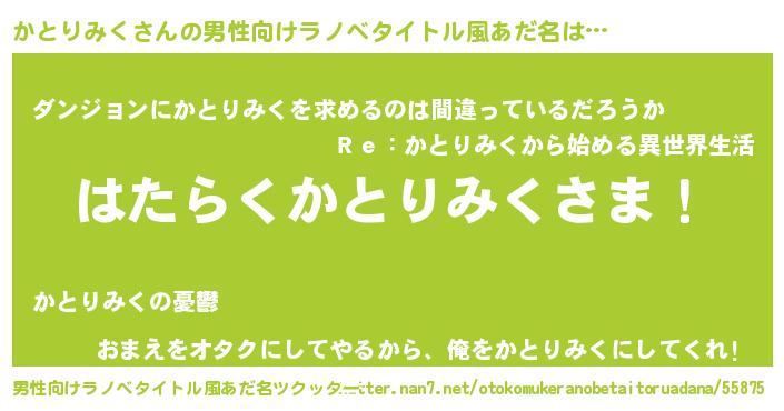 | 意味不明あだ名 | 『とにかく怪しいかとりみく』 |