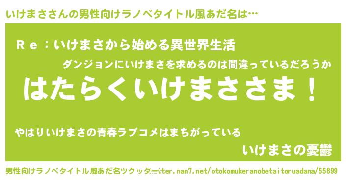 | 意味不明あだ名 | 『自称いけまさ』『ペロリンいけまさ』 |