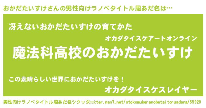 | ヒーロー風カッコイイあだ名 | 『超時空戦士オカダタイスケ』 |