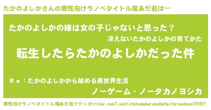 | 肩書あだ名 | 『たかのよしか少佐』『たかのよしか塾長』 |