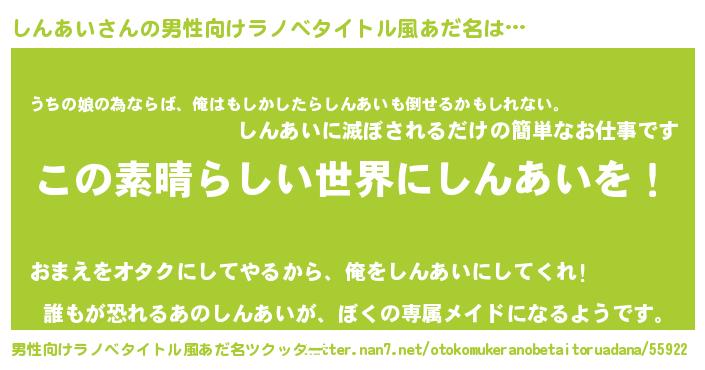 | 胡散臭い通販商品みたいなあだ名 | 『あなたにだけ特別に提供する世界で10本だけ現存している希少なブランデー…その名も「しんあい」』 |