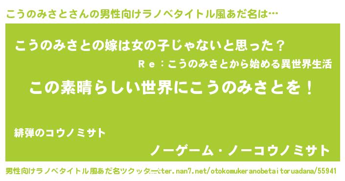 | 女子向けラノベタイトル風あだ名 | 『乙女ゲームの破滅フラグしかない悪役こうのみさとに転生してしまった…』 |