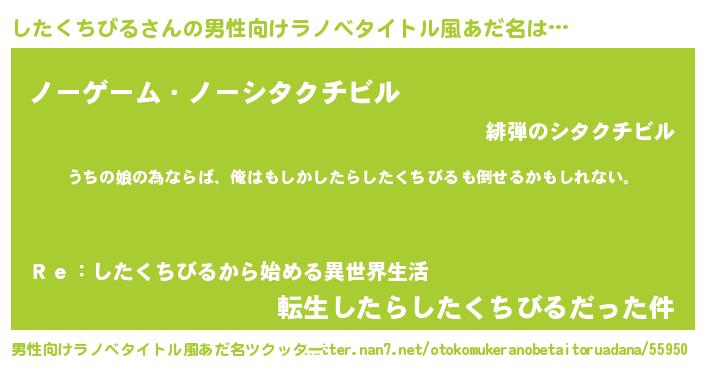 | ファンタジー風あだ名 | 『エターナルシタクチビルー』 |