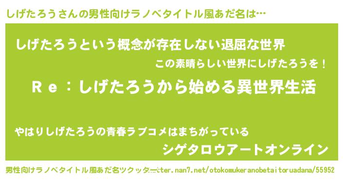 | 女子向けラノベタイトル風あだ名 | 『闇のしげたろう』 |