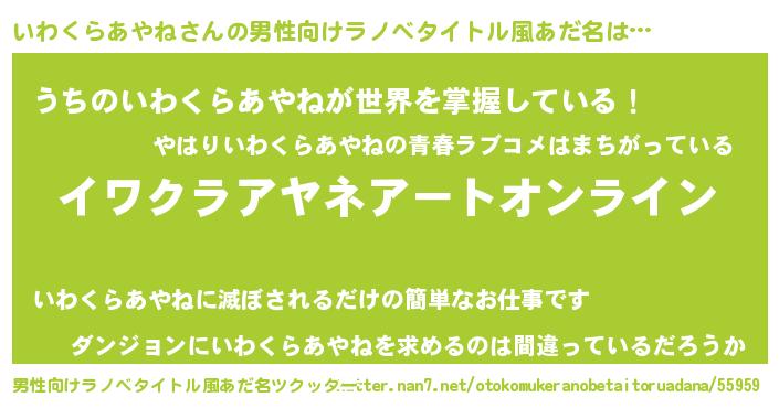| 女子向けラノベタイトル風あだ名 | 『いわくらあやね姫と円卓の騎士』 |
