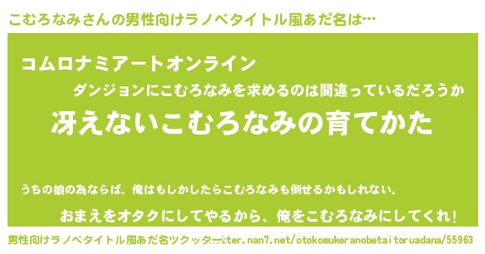 | ヘコむあだ名 | 『こむにゅー』『こむっ子』『豆乳』 |