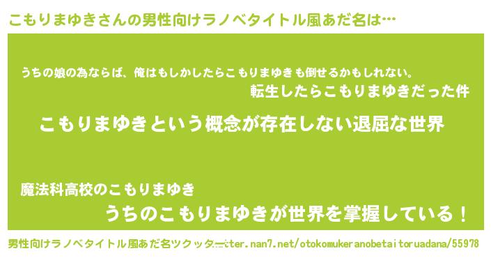 | 意味不明あだ名 | 『永久保存こもりまゆき』 |