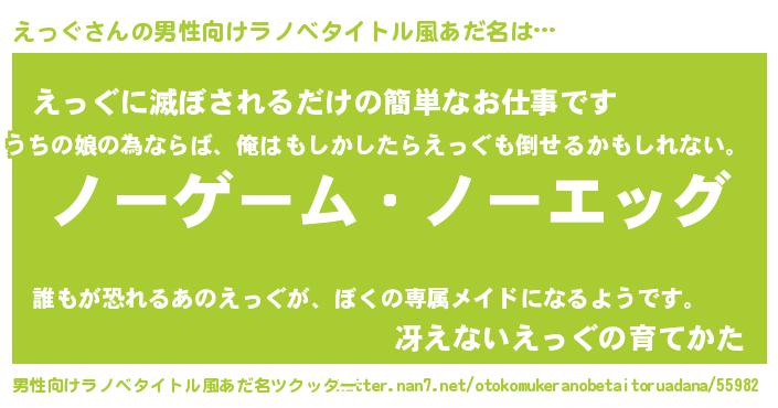 | 女子向けラノベタイトル風あだ名 | 『死神えっぐの再婚』『えっぐの婚約者』 |