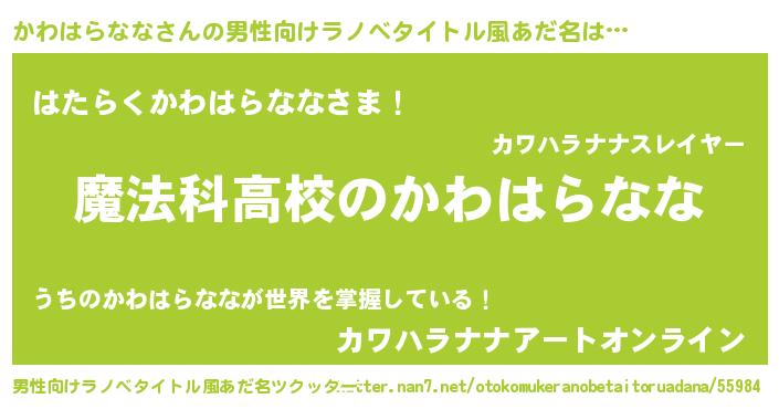 | 女子向けラノベタイトル風あだ名 | 『かわはらなななんてお断りですっ。』 |