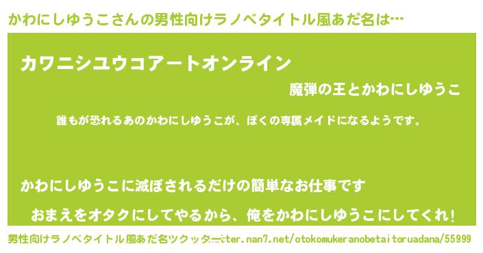 | ヘコむあだ名 | 『かわにしゆうこ(笑)』『かわもー』 |
