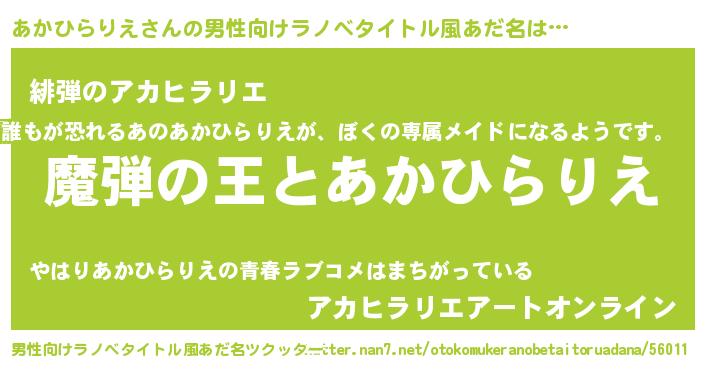 | 意味不明あだ名 | 『住所不定無職あかひらりえ(11歳)』 |