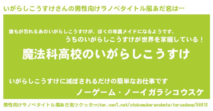 | ヒーロー風カッコイイあだ名 | 『超時空戦士イガラシコウスケ』 |