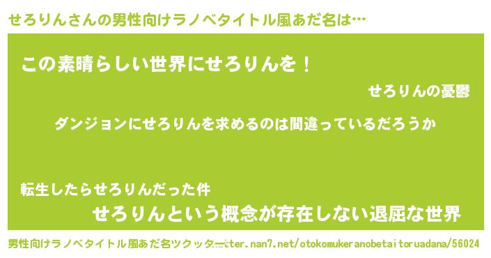 | 女子向けラノベタイトル風あだ名 | 『せろりんの卵を拾いまして』 |