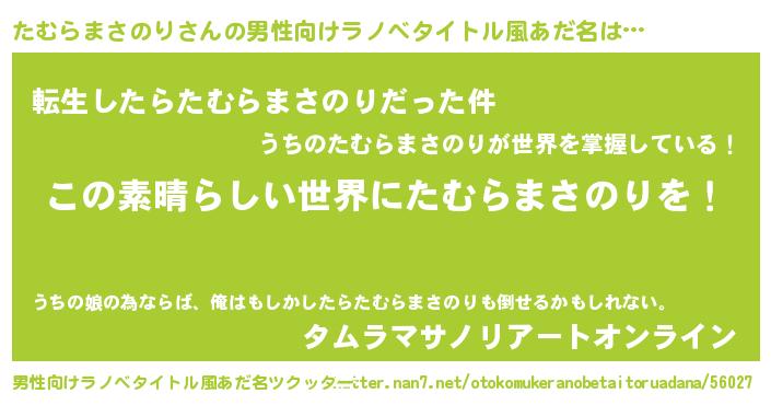 | 女子向けラノベタイトル風あだ名 | 『悪役たむらまさのりに転生したようですが、知った事ではありません』 |