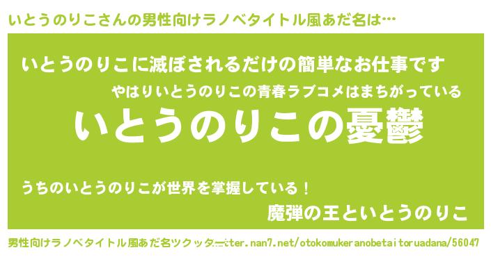 | 女子向けラノベタイトル風あだ名 | 『(仮)いとうのりこのやんごとなき事情』 |