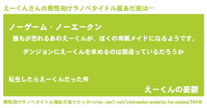 | 女子向けラノベタイトル風あだ名 | 『えーくんの卵を拾いまして』 |