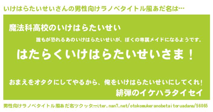 | ヘコむあだ名 | 『いけはらたいせい(小並感)』『いけお』 |
