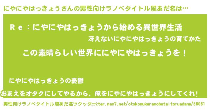 | 胡散臭い通販商品みたいなあだ名 | 『あなたにだけ特別に提供する世界で10本だけ現存している希少なブランデー…その名も「にやにやはっきょう」』 |
