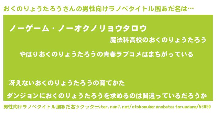 | 女子向けラノベタイトル風あだ名 | 『おくのりょうたろう伯爵の花嫁』 |